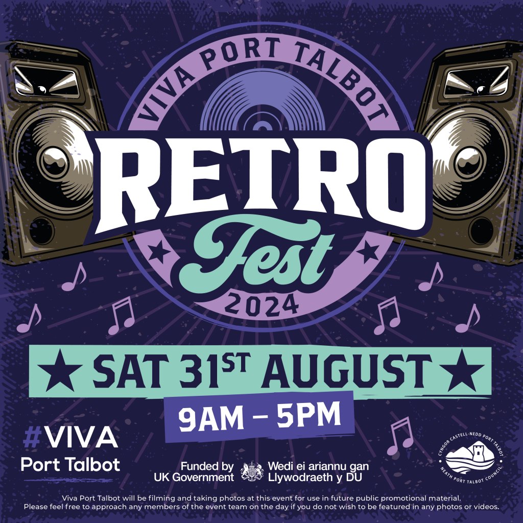 We’re totally psyched to announce the brand-new VivaPT Retro Fest, taking over Port Talbot town centre on Saturday 31st August!